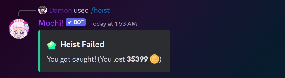 If things don't go as planned during the heist, you'll receive a response indicating that it was unsuccessful.