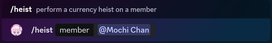 To perform a heist on another member use the /heist