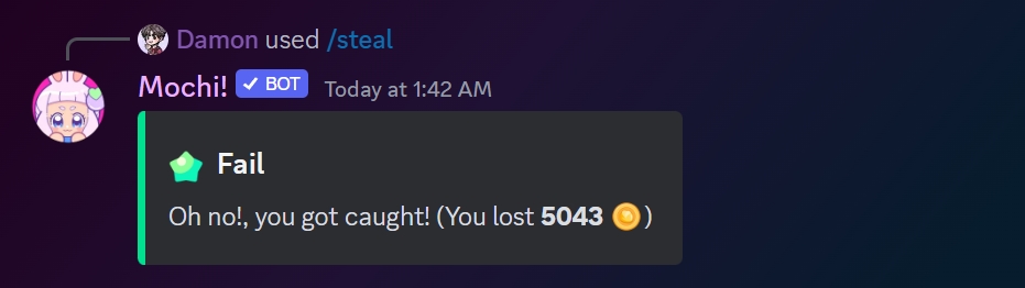 If you're not able to successfully steal the currency, you'll receive a response indicating that the attempt was unsuccessful.