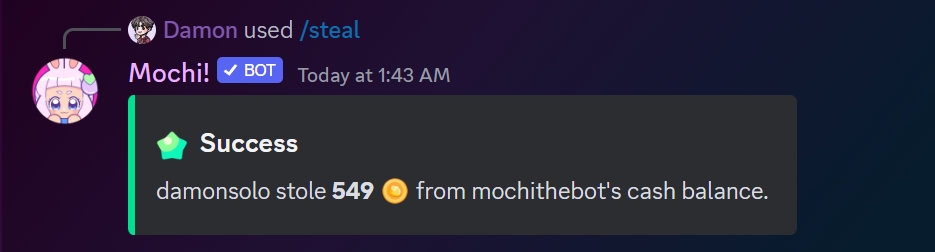 Once you've successfully stolen the currency, you can expect to receive the following message confirmation: