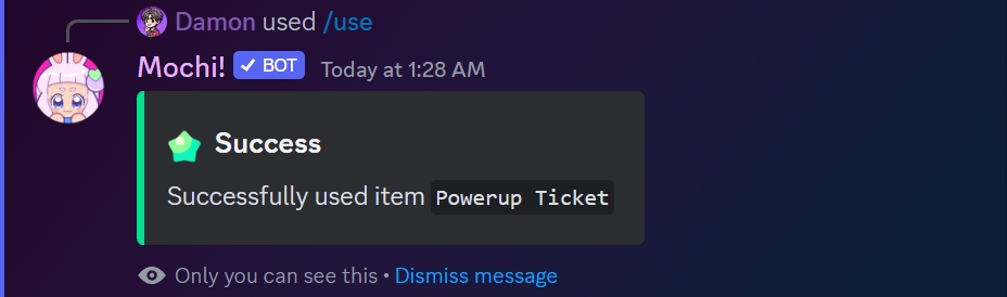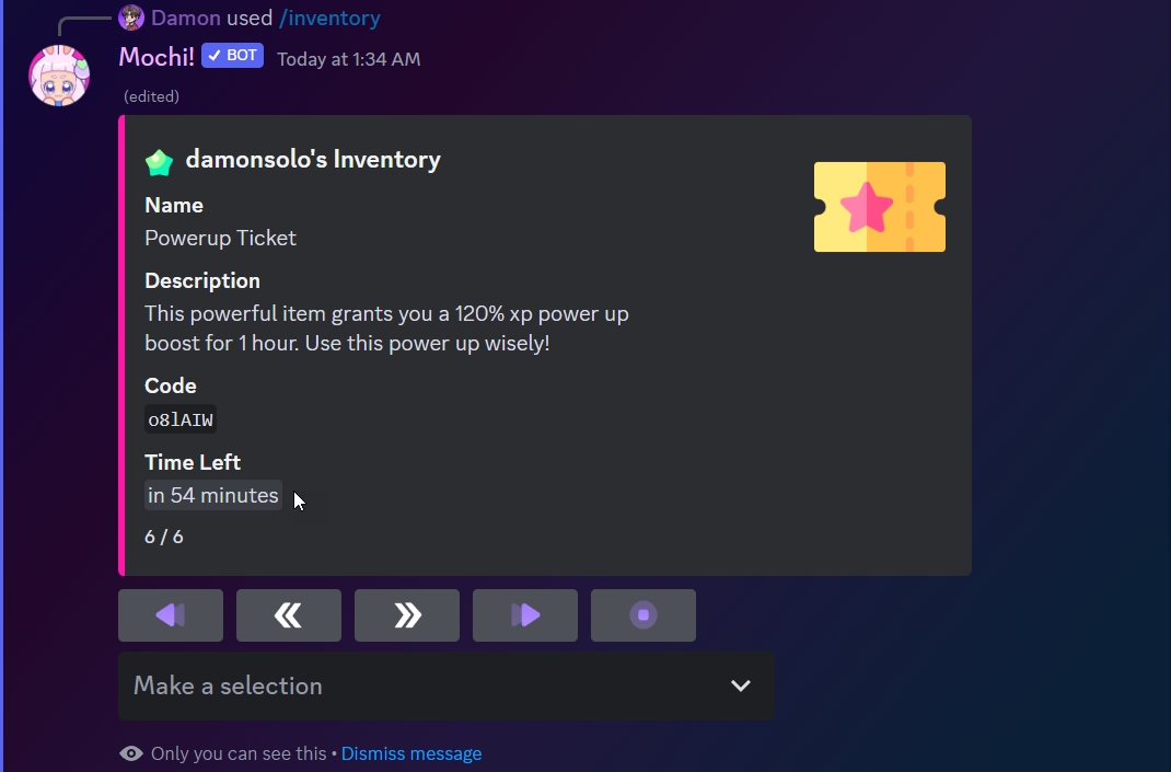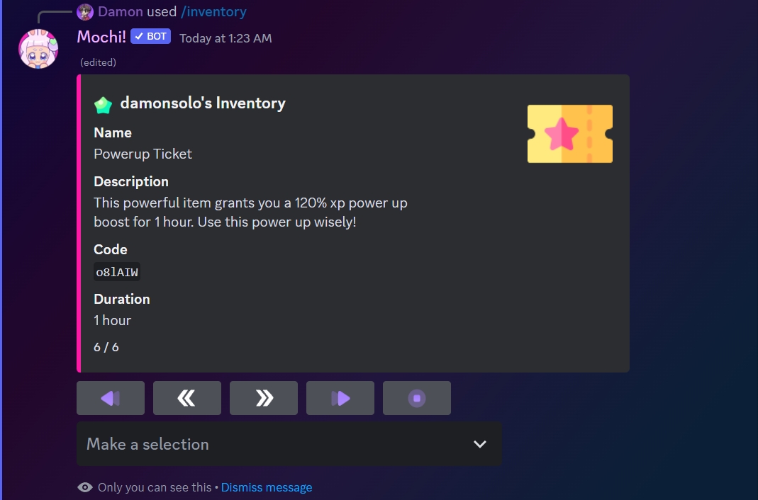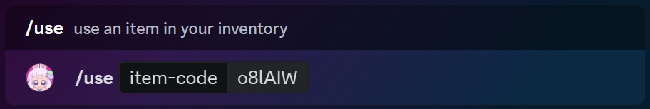 In order to use an item from your inventory, you will need to have the specific code that is associated with it. You can easily access your inventory at any time by simply using the /inventory command.