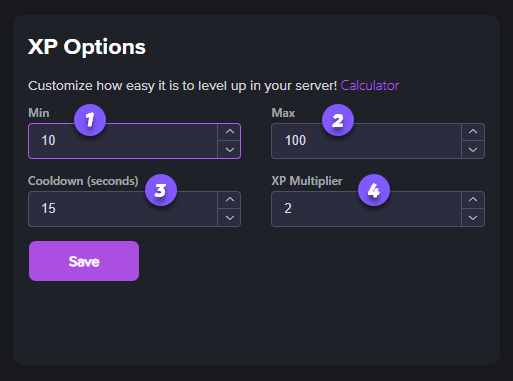 XP Multiplier: You can use the XP Multiplier function to increase the amount of XP earned by members in the server. By setting a multiplier of "2," for example, members can earn between 20 and 200 XP per minute, depending on their level.