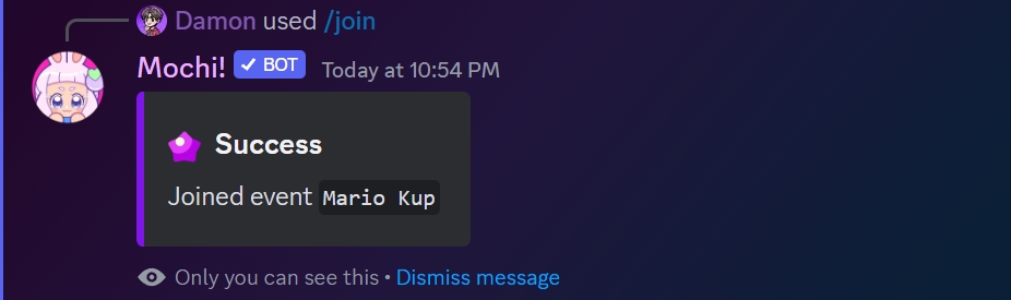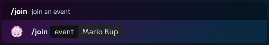 To join an event on the server, use the /join