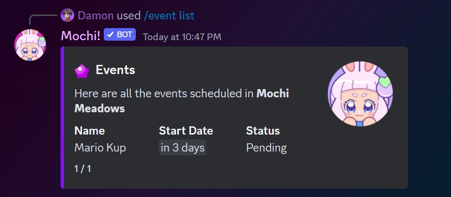 To view a list of events on the server, use the /event list