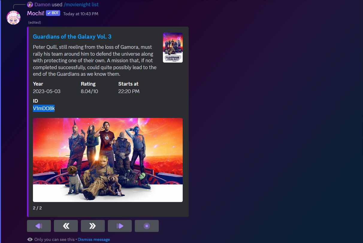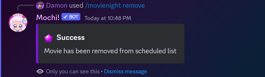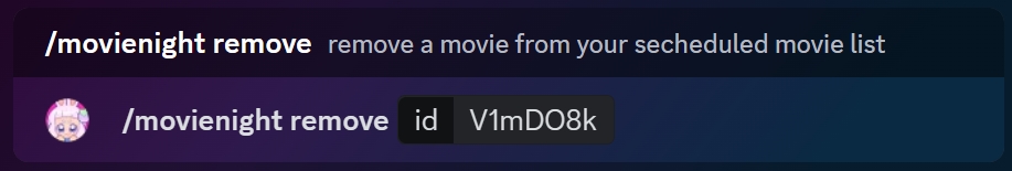 If you want to remove a movie night event from the queue, no worries! You just need to use the /movie night remove
