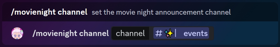 If you want to create a channel for announcing movie nights, just type in the command /movienight channel