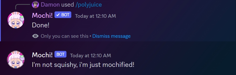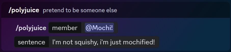 The Polyjuice command in Mochi Discord bot lets you assume the identity of any member, even other bots, for playful interactions.