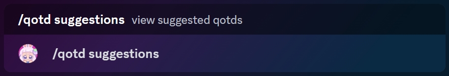 You can see a list of all suggested QOTDs made by community members by using the command /qotd suggestions