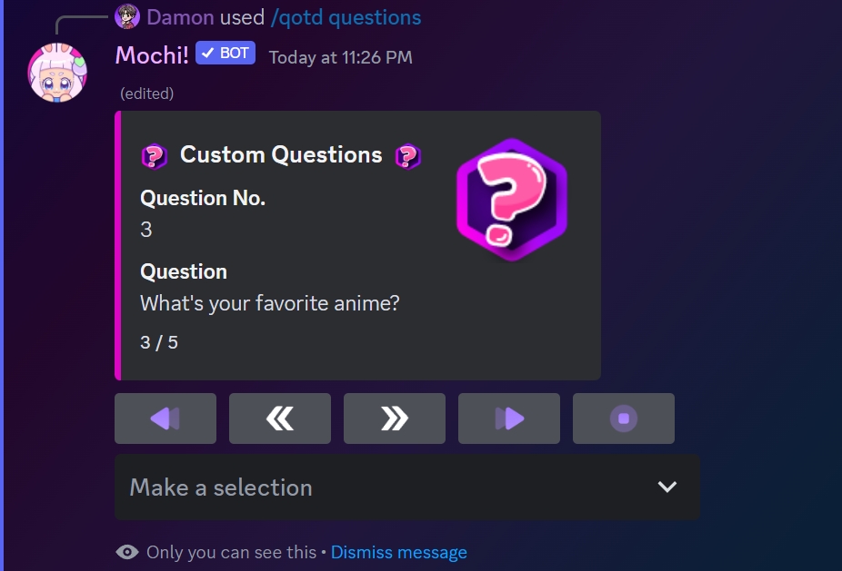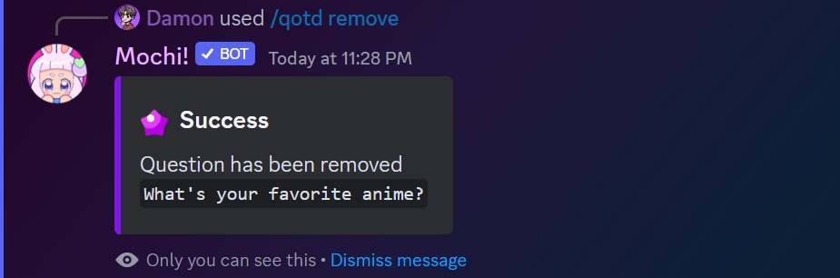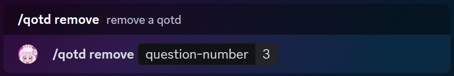 If you've done everything right, question number 3 will be removed from the list of custom qotd questions!