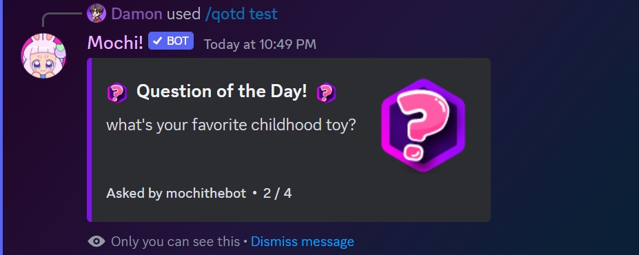 If you use it correctly, a successful test QOTD will be sent to your QOTD channel.