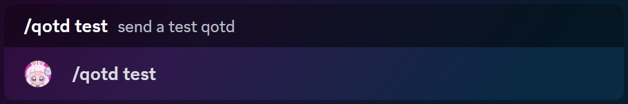 You can send a test Quote of the Day (QOTD) to your QOTD channel by using the command /qotd test