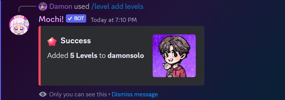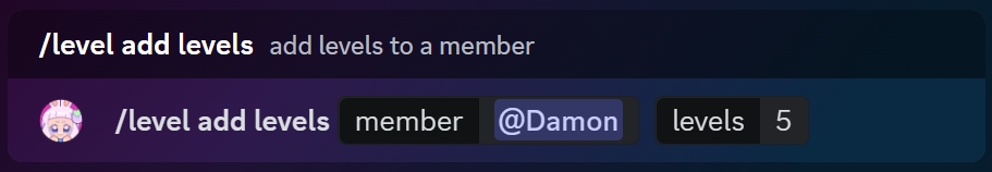 To provide an additional reward level and a special prize to a member, you can use the command /level add levels.