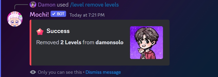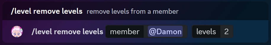 If you want to bring down a member's reward levels, simply type in /level remove levels