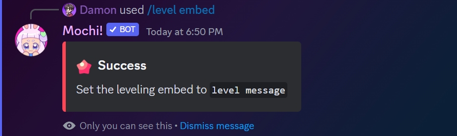 You can let your fellow server members know how they're doing by sending them level embed messages. These messages display the XP they've earned and any level advancements they've made in a fun and eye-catching way.