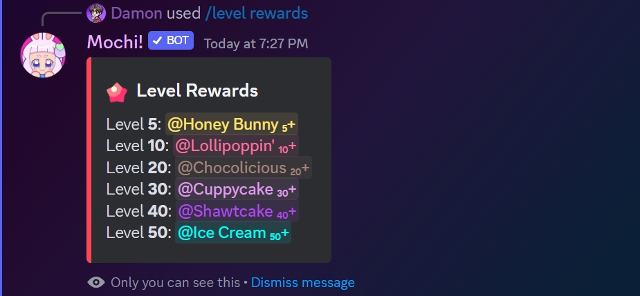If you want to check out the rewards available at each level on the server, just type in the command /level rewards