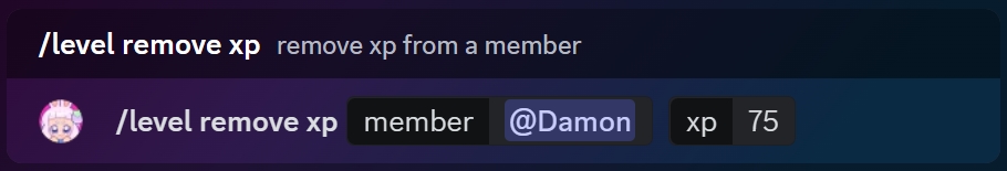 If you need to remove XP from a member in your server, you can use the command /level remove xp