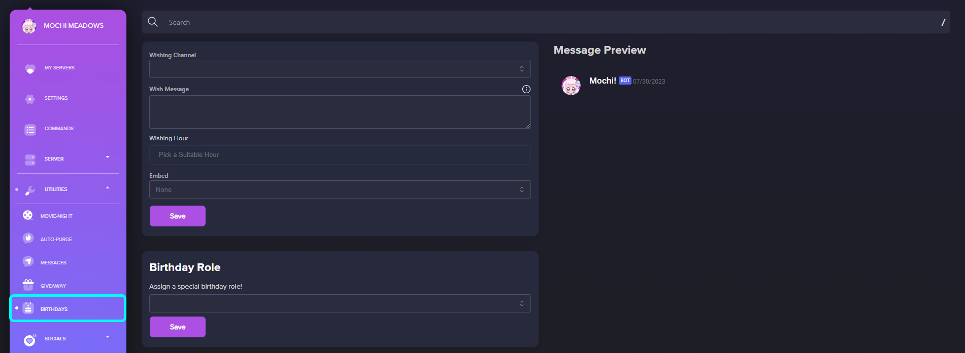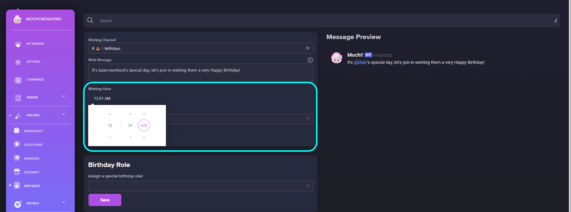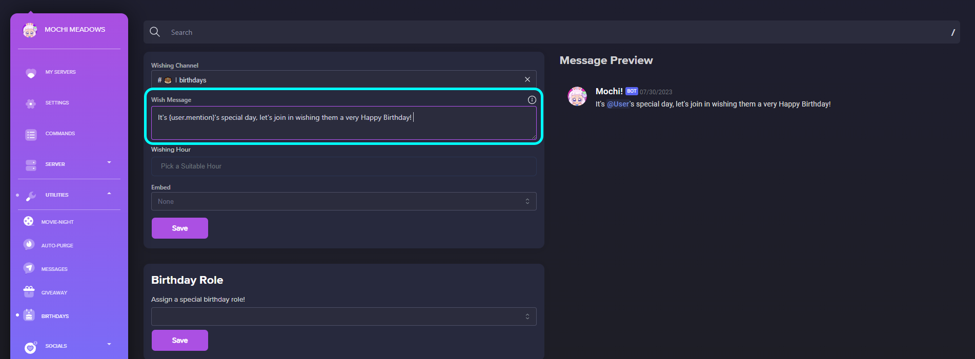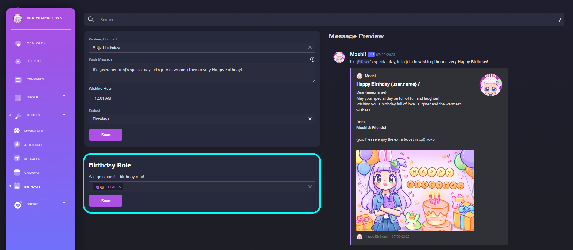 Birthday Message Setup with Mochi Dashboard