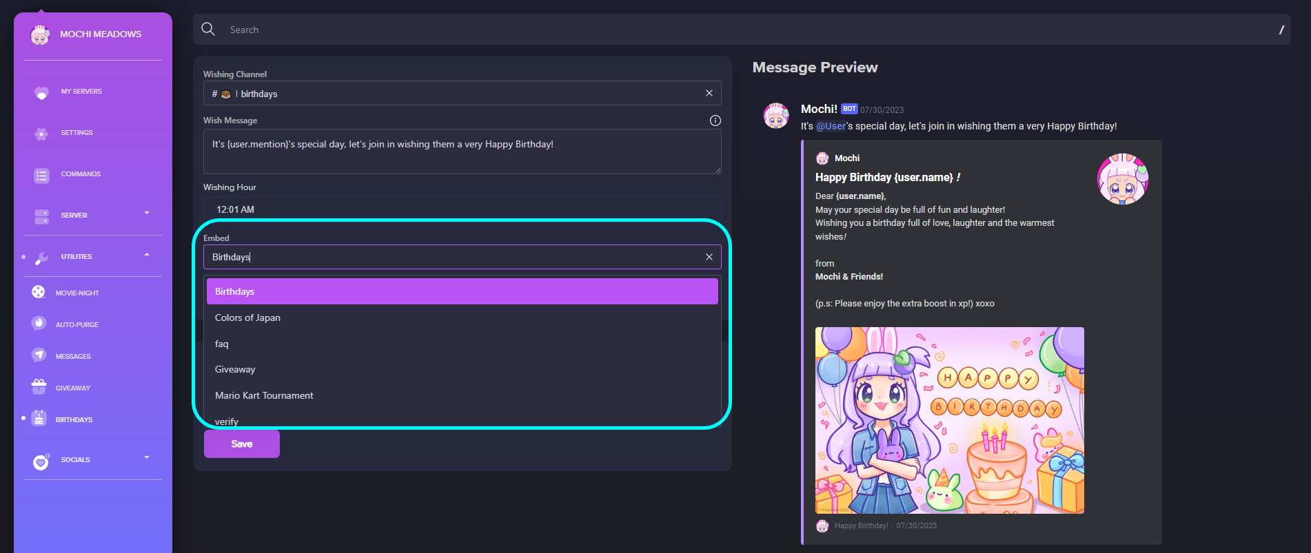 Step 5: Set the Birthday Wish Embed