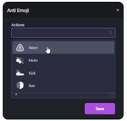 Kick: If a member exceeds the emoji limit, Mochi will automatically kick them from the server.