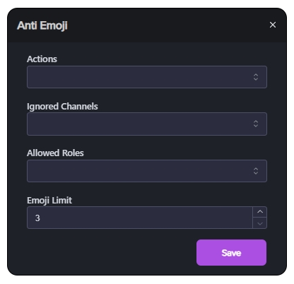 In the Anti Emoji module, you have the option to personalize the following settings: