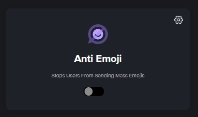To access this feature, just click on the gear icon located at the top of the chat window. From there, you can customize the Anti-Emoji module to your liking.