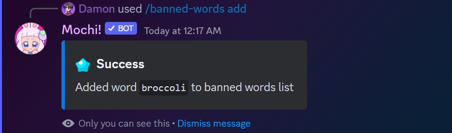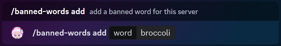 You'll get a confirmation as soon as the new banned word has been added to the banned words list.