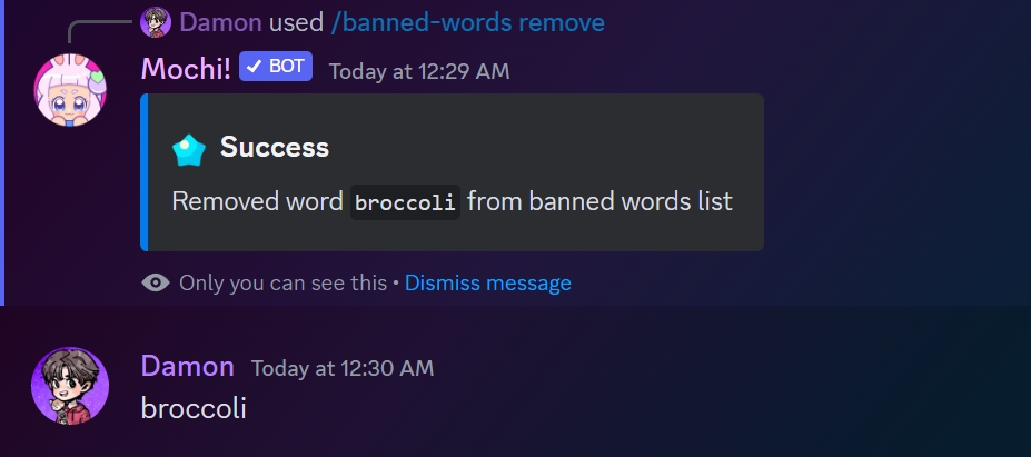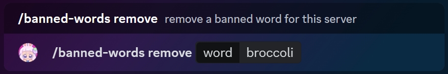Once you use the command, you'll receive a message confirming that the previously banned word is now unbanned in your server.