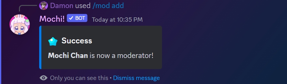 You'll get a confirmation as soon as the moderation role has been assigned to the new Moderator.