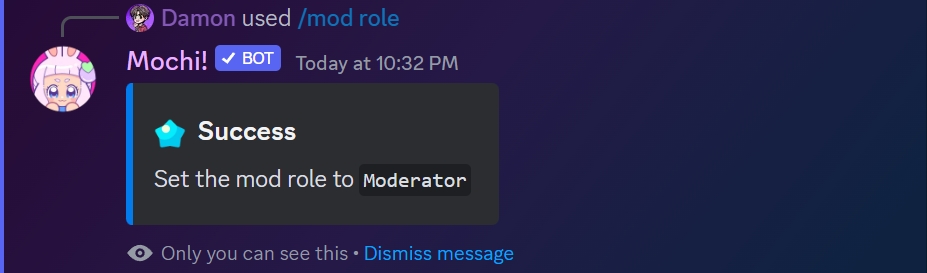 Warning: If a member is trusted and has the Moderator role with Administrator privileges, they can access the Mochi dashboard. It's important to ensure that only reliable members have access to this feature.