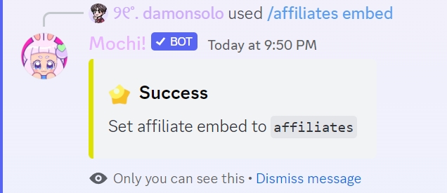Once the affiliate embed has been set, you would receive the following confirmation: