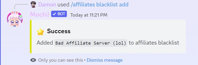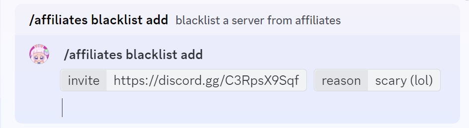 To blacklist a server from affiliates, simply use the command /affiliates blacklist add