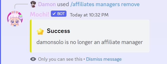 Once you've removed an affiliate manager, you'll receive a confirmation: