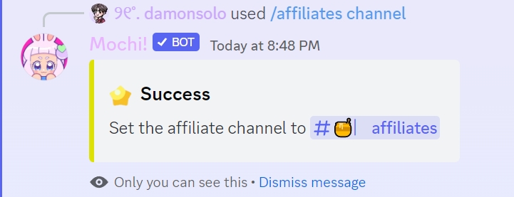 command, you can choose a specific text channel in your server where you can share any Affiliate ads. It's a great way to keep everything organized and easily accessible for everyone.