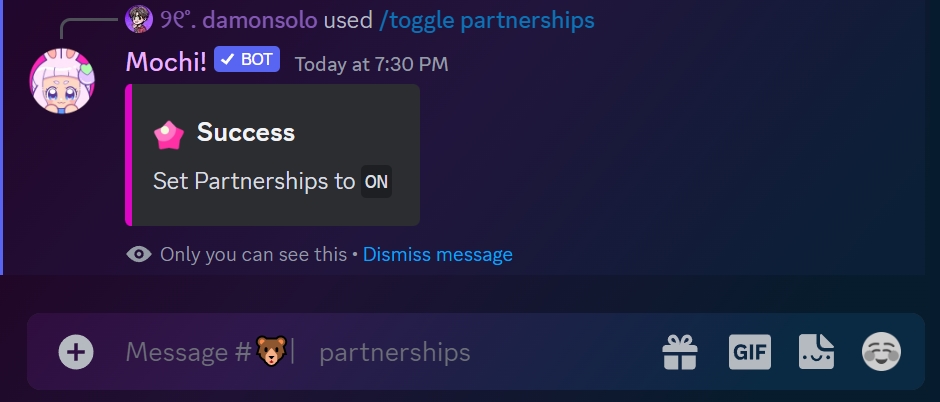 If you want to enable Partnerships again, just type in /toggle partnerships