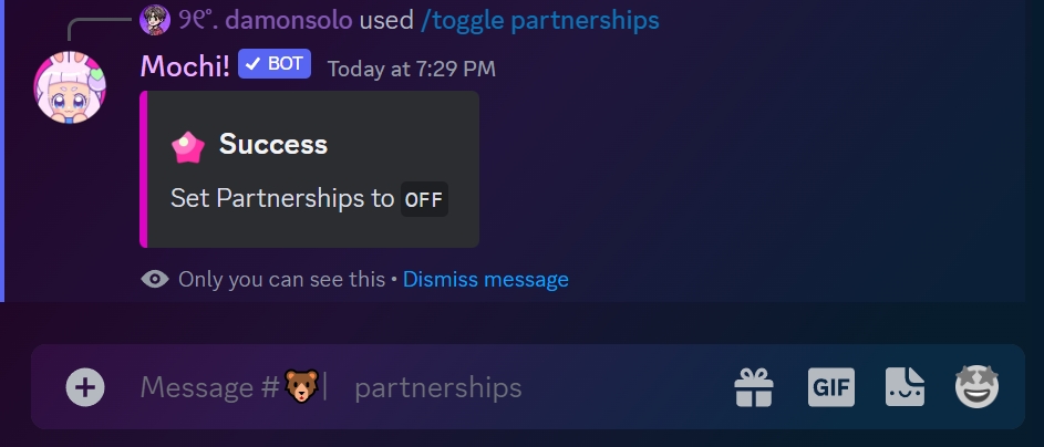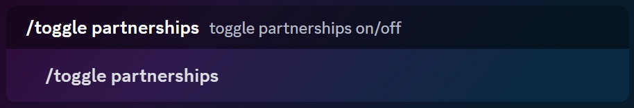 If you want to turn off partnership for your server, just type in the command /toggle partnerships