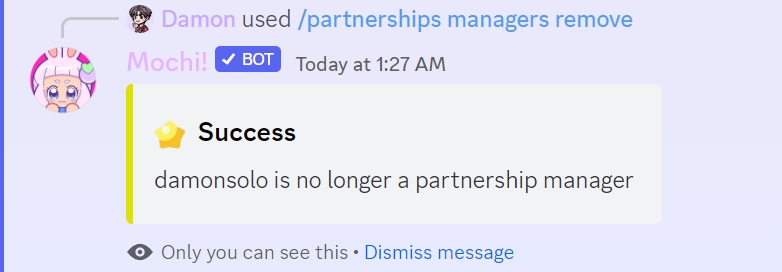 You'll get a confirmation as soon as the partnership manager's role is removed.