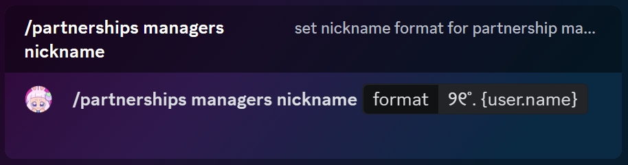 Customize your Partnership Managers' display names in Discord by using the /partnerships managers nickname