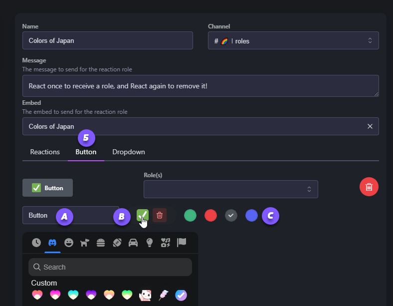 Step 5: Select Emoji, Label, and Button Color