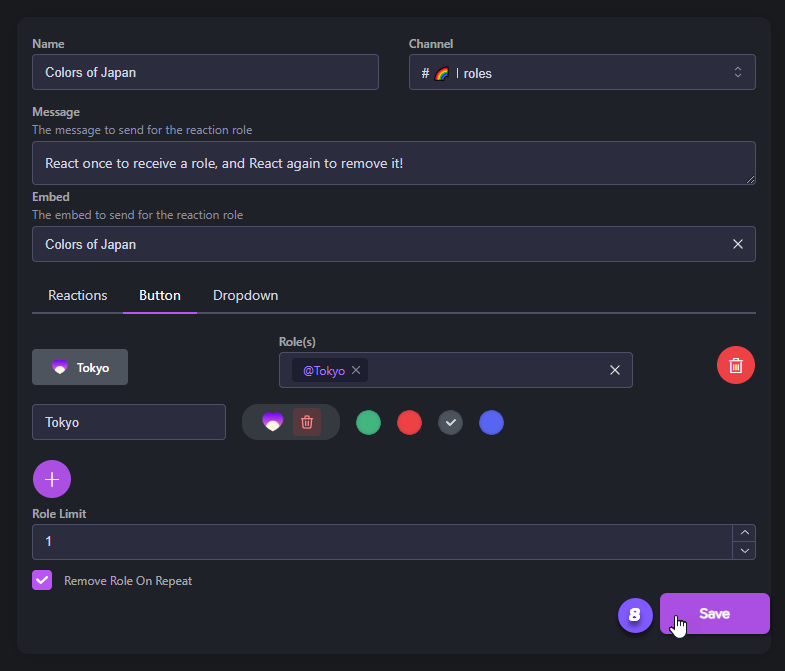 Reaction Role Buttons