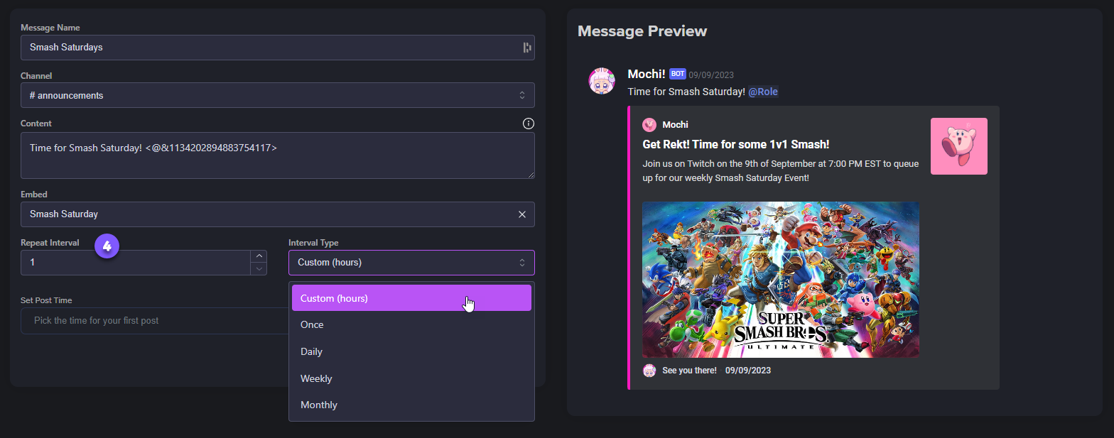 Creating Customizable Hourly, Daily, Weekly, or Monthly Scheduled Messages