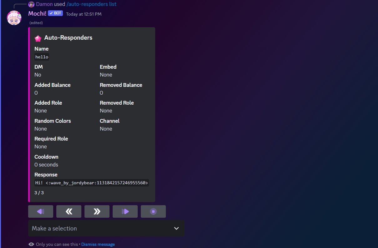 If you want to see a list of all the autoresponders you've set up on your server, just type in the command /auto-responders list