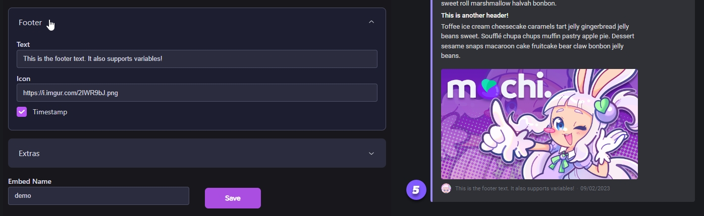 And with Mochi's Embed Builder, you can get really creative by using variables in the footer text field for even more customization options. Give it a try!