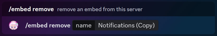To remove an existing embed from the server, simply use the /embed remove