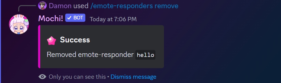 Once the emote responder has been successfully deleted, you will receive a confirmation: