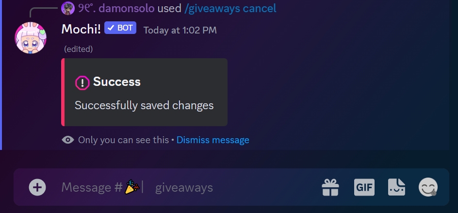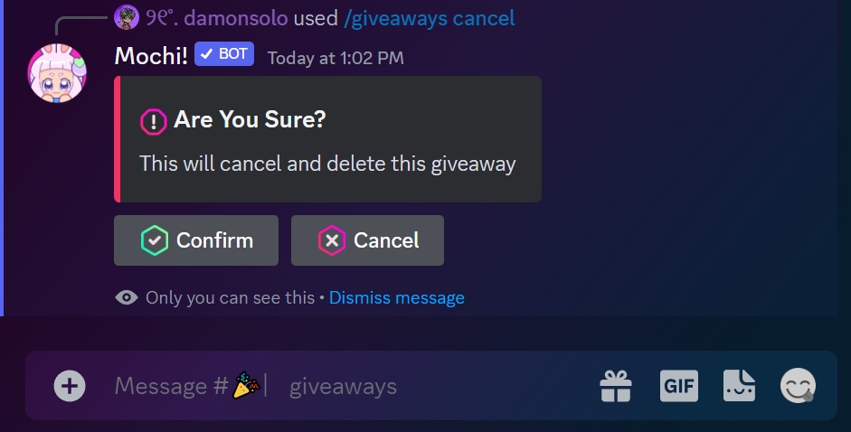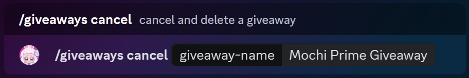 If you need to cancel a giveaway that's already running, you can use the /giveaways cancel