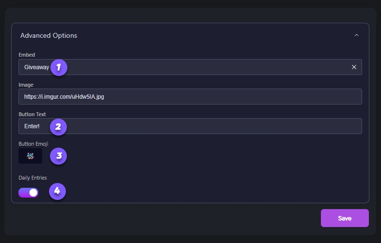 To access these Prime features, simply navigate to the "Advanced Options" menu within Mochi's Giveaway module.