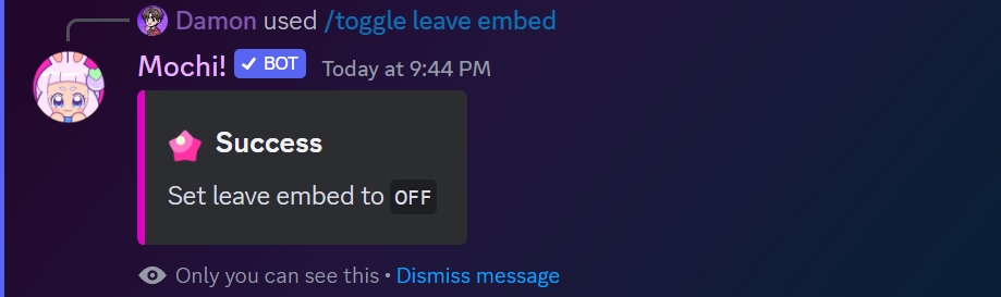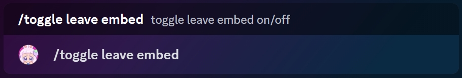 If you want to turn off the Leave Embed for your server, simply type in the /toggle leaved embed