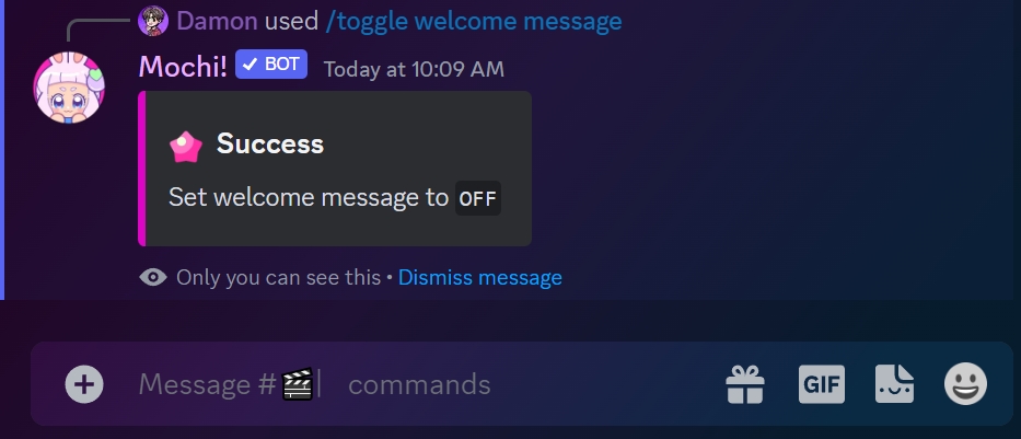 If you'd like to turn off the welcome message for your server, just use the /toggle welcome