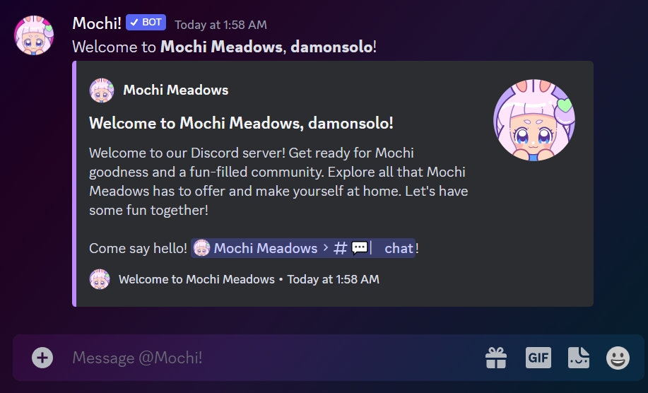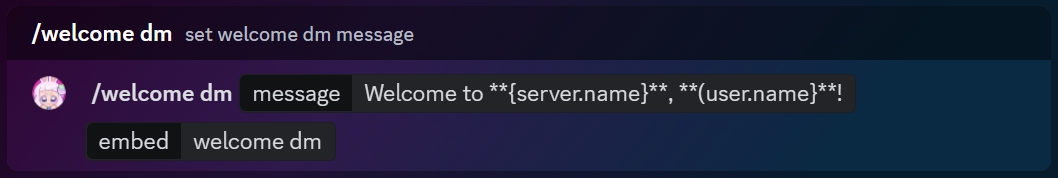 If you want to give new users a warm and personal welcome, try using the /welcome dm command to create a custom welcome direct message. You can keep it simple with just text, or add some extra flair with an embedded message.