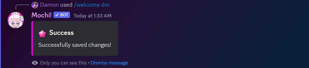 You'll get a confirmation as soon as the welcome DM message has been setup and saved!